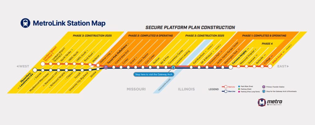This state-of-the-art security plan enhances the customer transit experience by creating centralized, secured and monitored customer entrances at all 38 MetroLink stations.