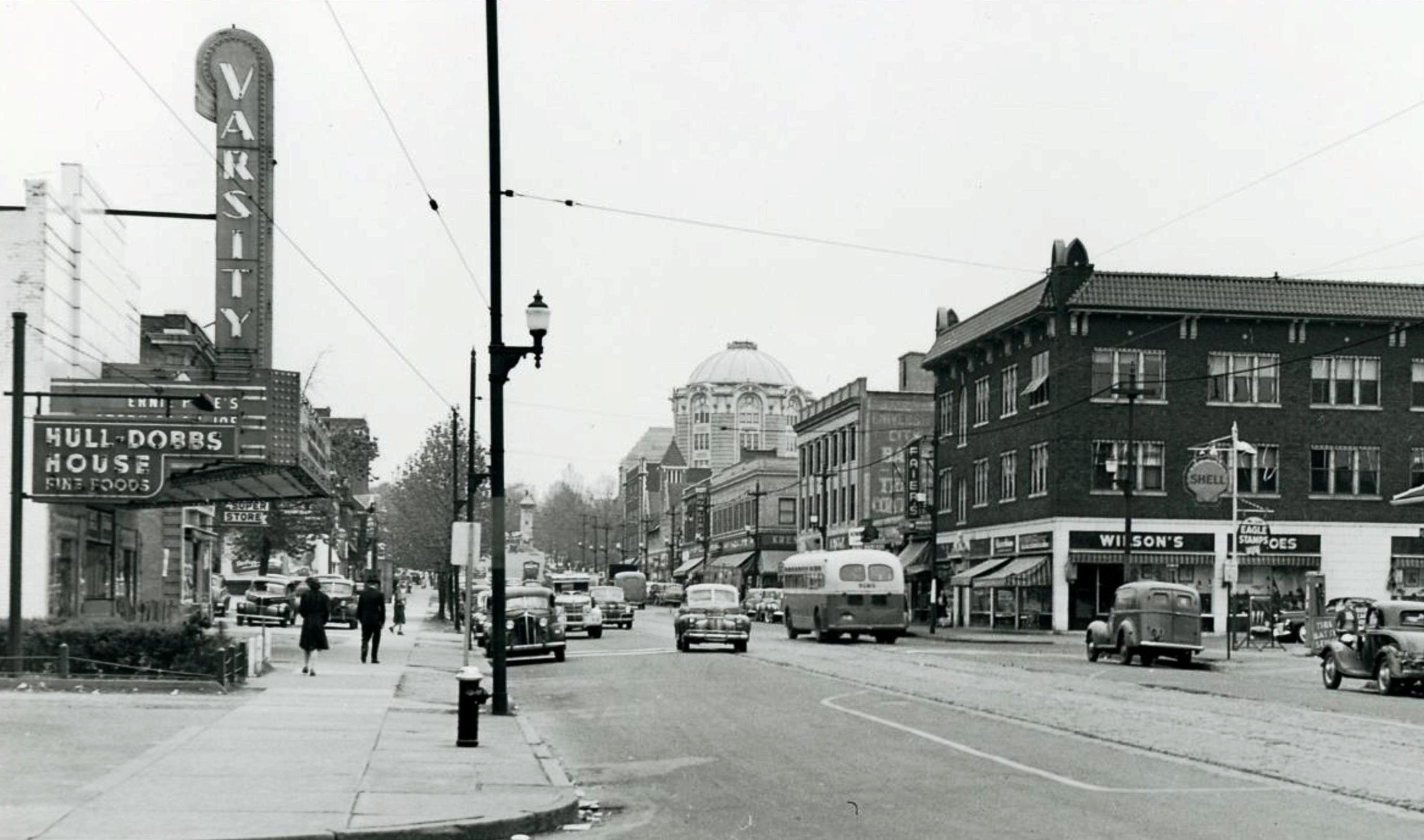 University City, Delmar and Leland. 1945. The Varsity is showing the Ernie Pyle movie from that year.