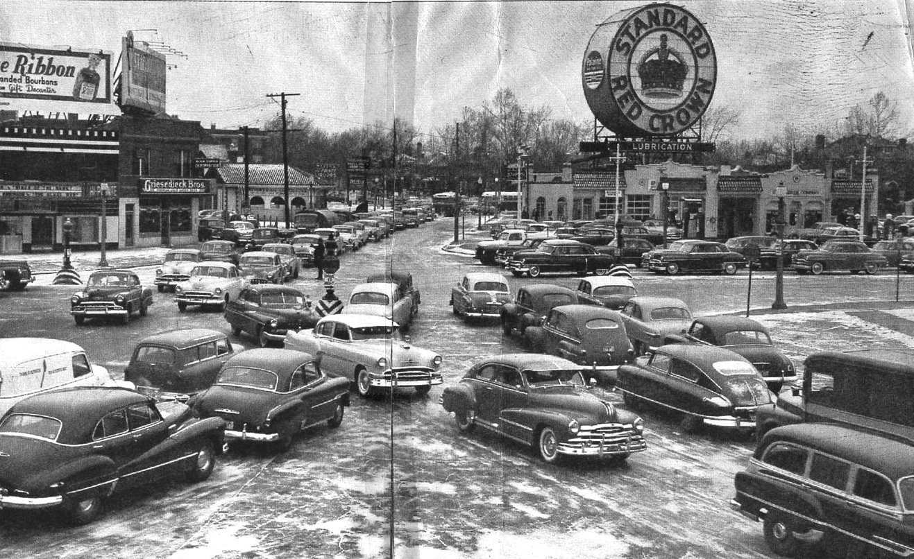 Longtime St. Louisans can identify this intersection from miles away – literally! The world’s largest Amoco sign was just as jumbo back in 1953 when this shot was taken, only it read “Standard Red Crown.” The photo was taken during a jammed morning rush hour at the intersection of Skinker Boulevard and Oakland Avenue. Thankfully, a few buses can barely be seen at the end of the long line of cars, thus qualifying this classic photo for our Flashback series.