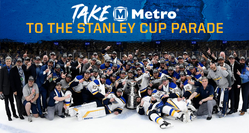 To avoid long lines and delays, purchase your tickets in advance using the Metro Mobile app. The Stanley Cup Parade Pass is valid for round-trip MetroLink service to the Stanley Cup Parade and Rally.